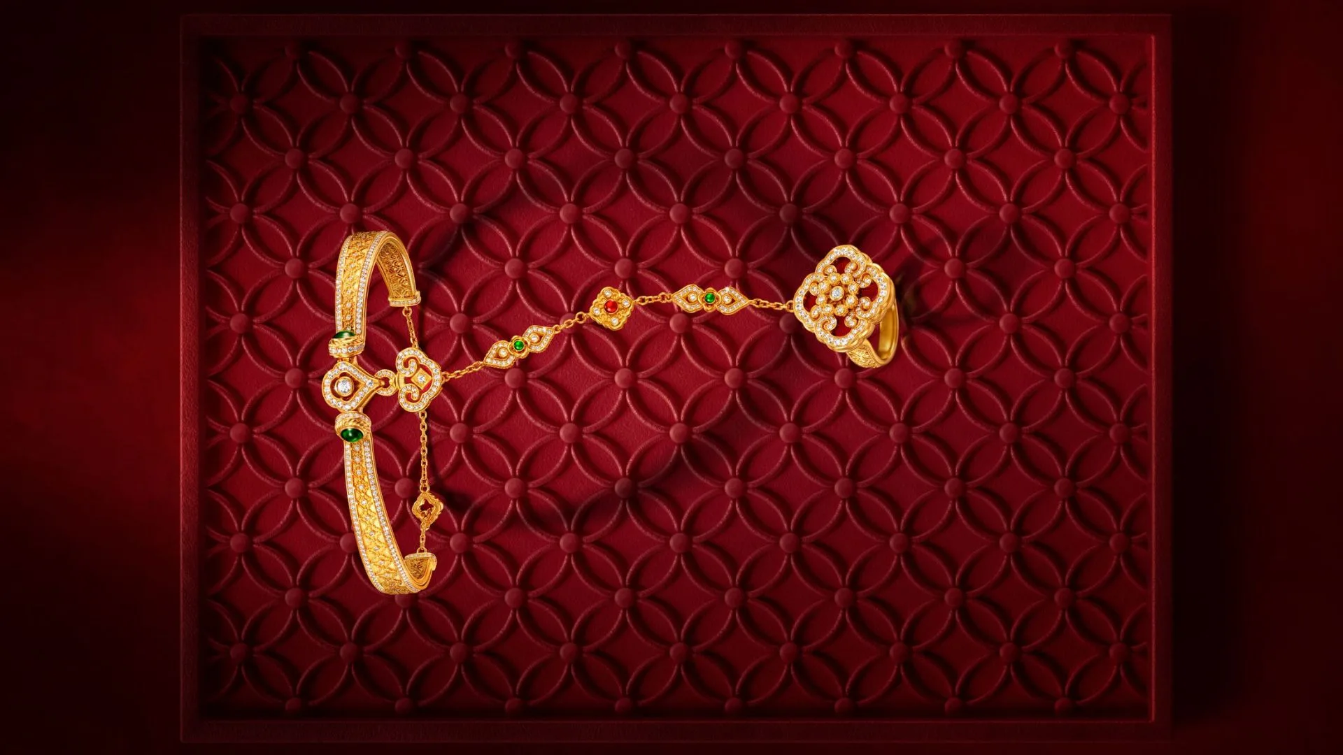 In Chow Tai Fook’s hands, this symbol becomes a stunning modern design, with diamonds set along fine golden filigree and enamel shades inspired by the vivid colours of the Forbidden City. Every curve and line reflects the balance between tradition and innovation, carrying blessings that feel both ancient and timeless.