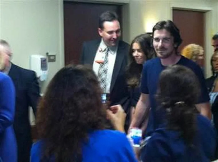 It was reported that Bale also met with Colorado Gov. John Hickenlooper and with doctors, police officials, and some first responders to the scene of the tragic Century 16 theater incident where 12 people were killed and 58 injured.