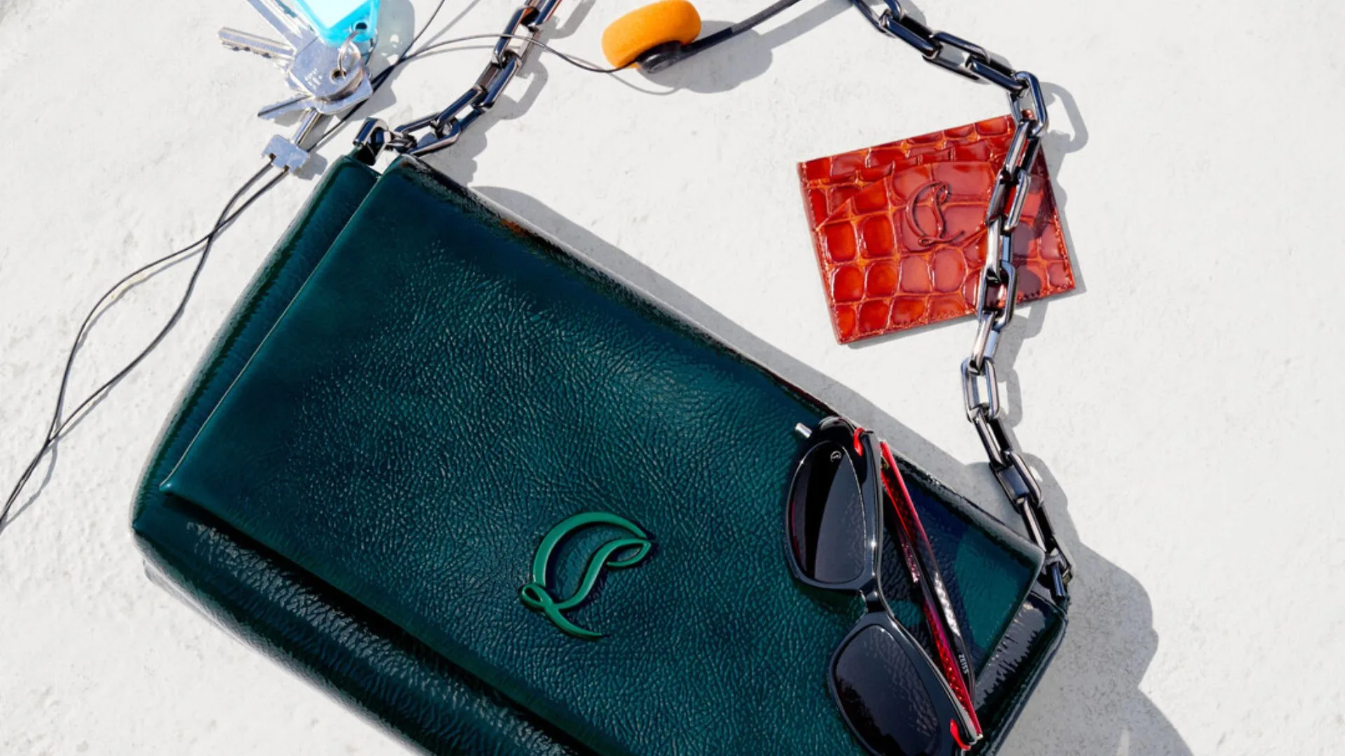 Artist Otis Carey also lent his creative vision to a stunning collection of bags, and Toile Enduite Gaagal is his interpretation of the classic Eloise style, ingeniously made to resemble individually printed colours beneath a water-repellent coating. Otis Waves uses laser-cut leather, woven together to obtain a wavy effect inspired by Carey’s personal love of the ocean. Reflecting on the collaboration, Carey shares that “my biggest mentor is Mother Earth, and I wanted to keep in mind the Christian Louboutin aesthetic but also bring in something new and fresh that might not have been used before and push the boundaries.”