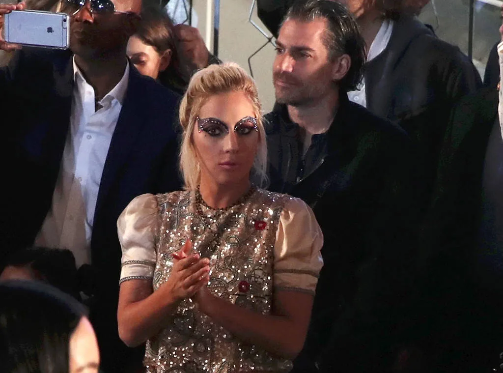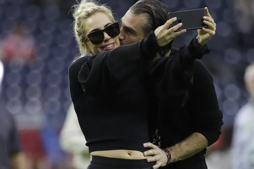 However, the budding couple wasn’t shy about showing their affection in Houston, Texas, during Gaga’s rehearsals over the weekend. In fact, Carino was seen wrapping his arms around the pop star while planting a kiss on her cheek as she took a selfie.
