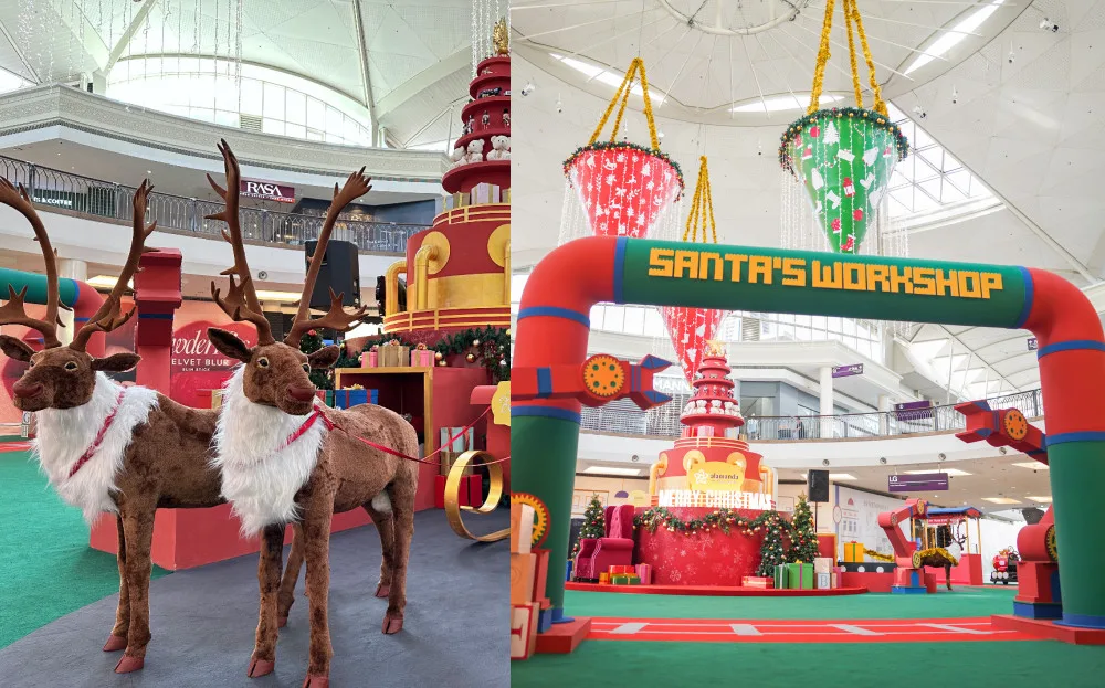 Shoppers around Alamanda can stop by and check out their amazing Christmas decorations of Santa’s workshop, even featuring life-size reindeers and sleigh! The iconic Santa Claus chair is also there for you to sit and take pictures with.