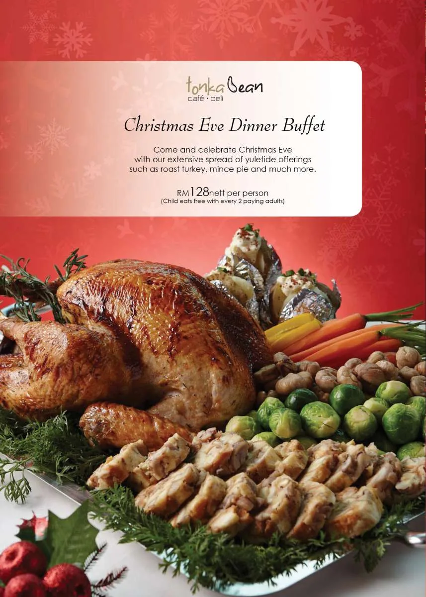 If you want to catch the fantastic fireworks at the strike of 12 while admiring the Christmas entertainment at KLCC Petronas Twin Towers, then Tonka Bean Café is the best place to have your Christmas Eve dinner buffet. Chow down on their whole roasted turkey, beef rump with Yorkshire pudding, and oysters on sea-salt. There’s also a variety of fresh seafood and Baskin-Robbins ice cream for desserts. Full menu here.