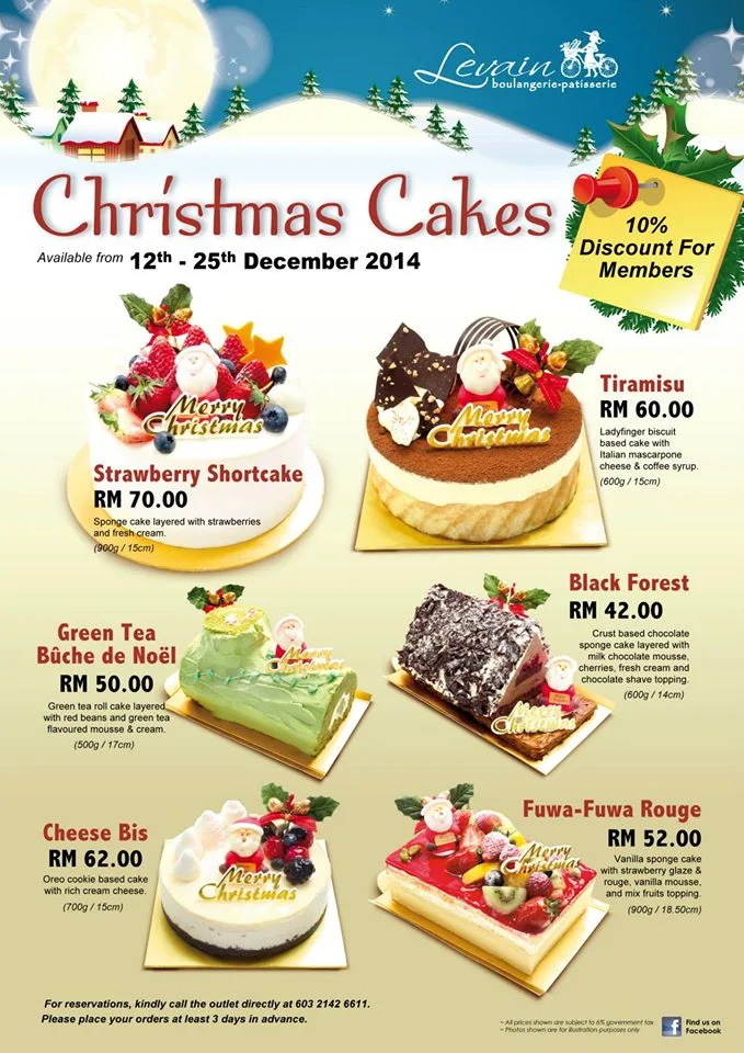 On the 12th day of Christmas, the bakery café will begin celebrating the festive season with its Christmas-themed cakes. The cakes are reasonably priced between RM42 to RM70. As shown in the poster, the cakes are available until the actual day of Christmas only.