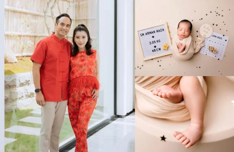 “Introducing our precious baby boy.. 💙 SM Arman Naza SM Faliq,” Chryseis Tan (陈雪铃) finally unveiled her baby boy‘s face for the first time last night (Monday, 7th February). The adorable photoshoot even zoom in on the newborn’s tiny feet sticking out of the cloth.