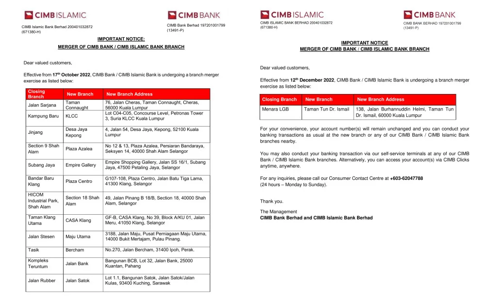 So, if you are a CIMB Bank user and heavily rely on the above-mentioned list of closing banks, make sure to prepare all your necessary items and plan ahead. Heads-up to other bank users too as CIMB Bank is not the first (or last) to merge branches.