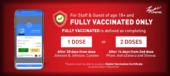 Among the SOPs implemented, only fully vaccinated individuals (guests and staff) over 18 years old are allowed to enter the cinema premises. Individuals must be able to produce a Digital Vaccination Certificate as proof when requested.