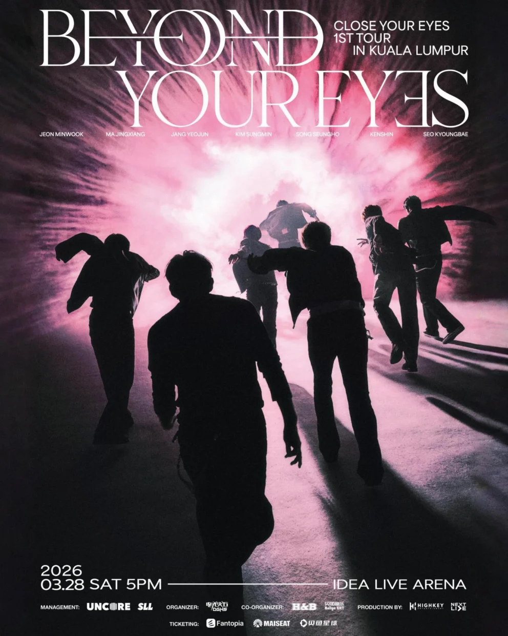 Concert promoter Nextlive Entertainment recently announced the details for CLOSE YOUR EYES’s upcoming concert in KL. The group will perform at Idea Live Arena on 28th March 2026 (Saturday) at 5pm. The ticket prices range from RM458 to RM858, and are now available for purchase via Fantopia.