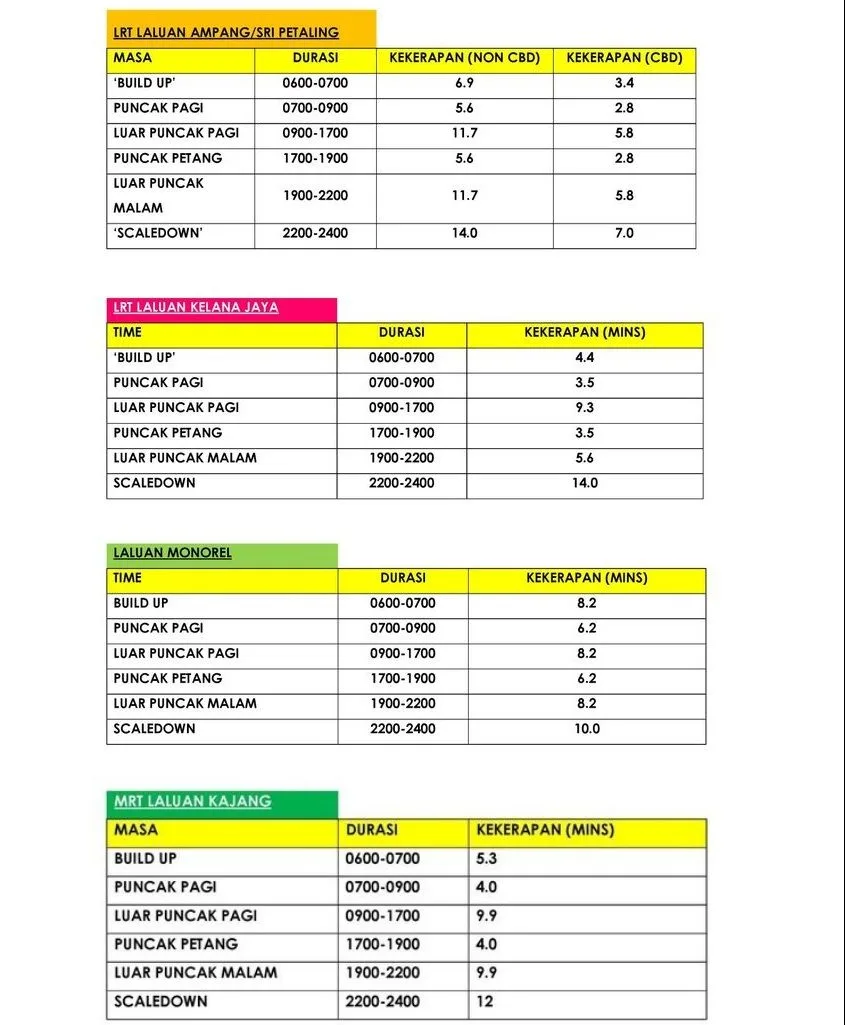 To plan your trips accordingly, please refer to the new frequency rates for LRT and MRT lines below: