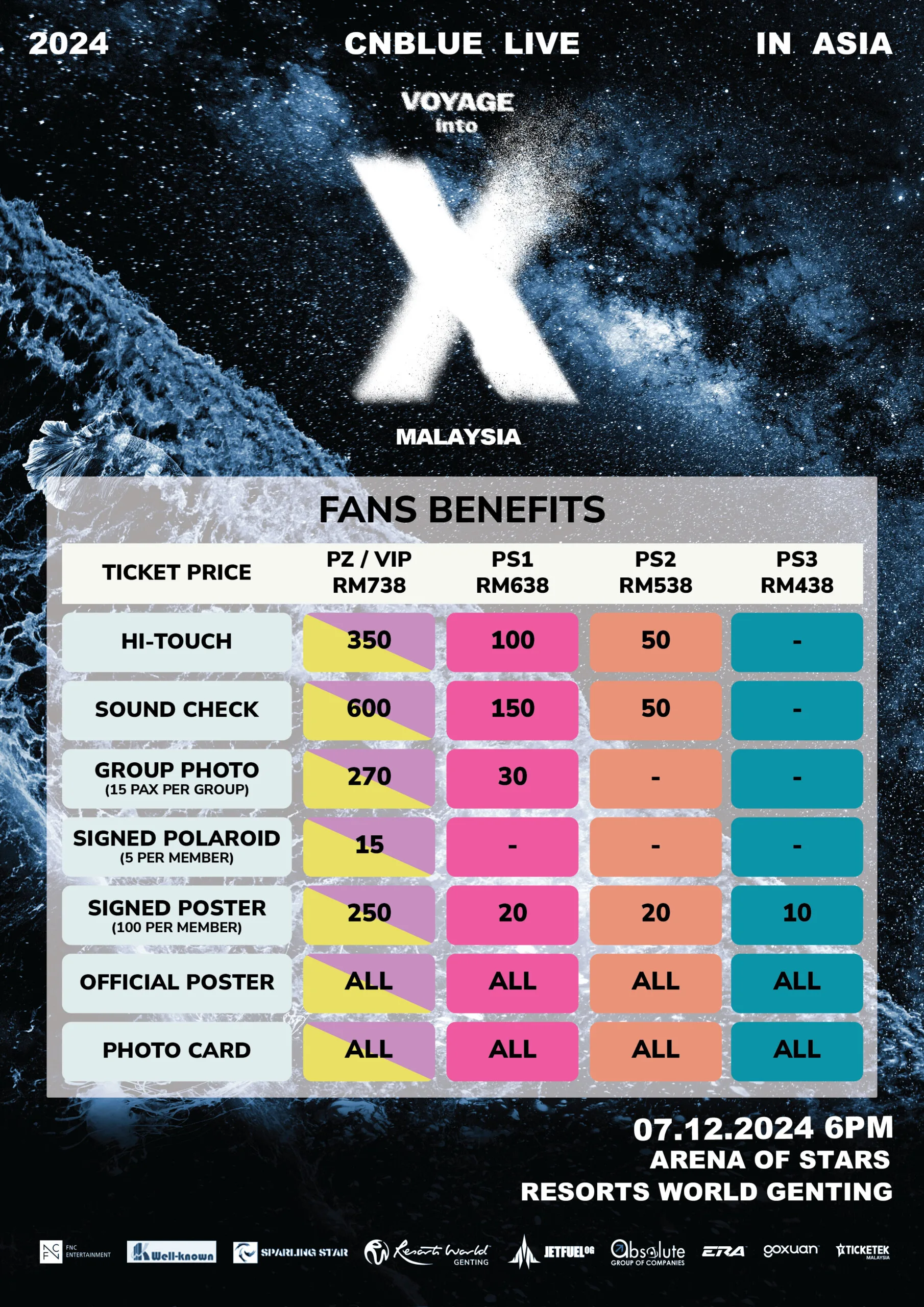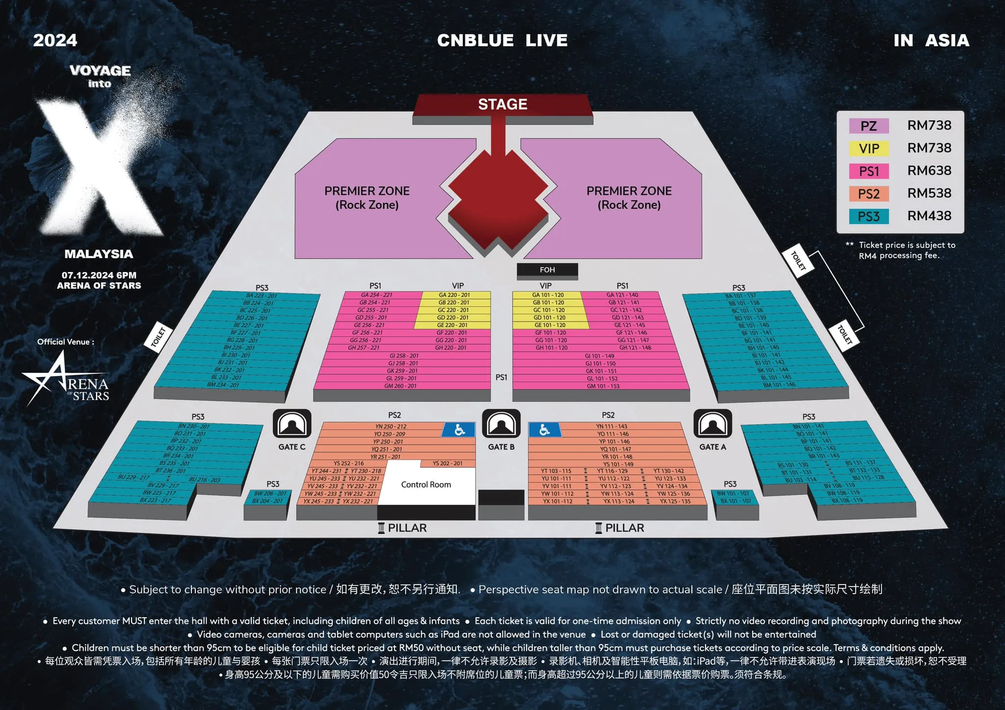 - Ticketing: (PZ/VIP) RM738, (PS1) RM638, (PS2) RM538, (PS3) RM438