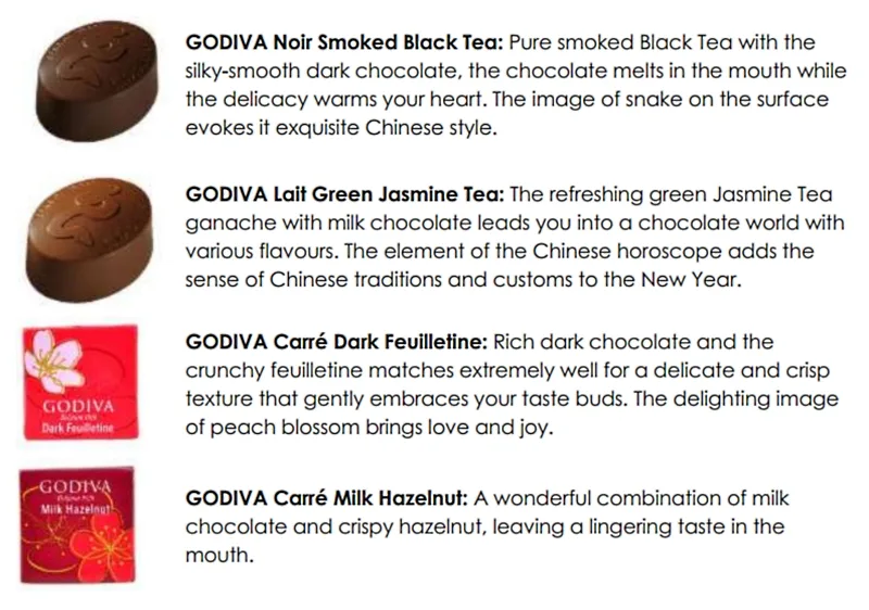 Everyone wants to have memorable and delightful New Year. The 2013 GODIVA Chinese New Year luxurious chocolate feast will definitely make the “Year of the Snake” an ultimately sweet and happy one.