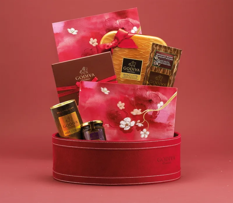 The “Decadence Hamper” (contains a Chinese New Year Gift Box 28pcs.; Chinese New Year Carré chocolate Gift Box 28pcs.; Truffe chocolate Gift Box 12pcs.; Biscuits Tin Box 50pcs.; Milk Cocoa Powder; Coffee Breakfast Blend and Dark Chocolate Spread.) at RM1,079.