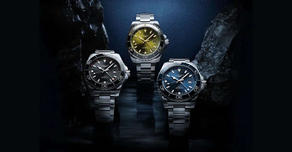 Introducing the upgraded HYDROCONQUEST GMT line! With a sleek 43mm case and water resistance up to 300 meters, these watches are perfect for water sports enthusiasts. Powered by an exclusive Longines movement, they offer multiple time zones and come in various colors and materials.