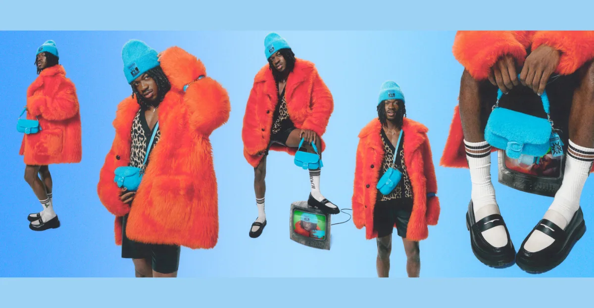 Coach debuts “The Lil Nas X Drop,” a unique capsule blending the iconic fashion house’s Winter 2023 collection with the personal touch of Lil Nas X, the expressive artist and Coach ambassador. This curated collection draws inspiration from Lil Nas X’s individual style, featuring hand-picked and customized pieces designed in collaboration with Coach Creative Director Stuart Vevers. Expect vibrant shearling coats, concert-inspired graphics, and a personalized American varsity jacket adorned with symbols close to Lil Nas X’s heart, such as his zodiac sign and beloved pet cats. This capsule reimagines American archetypes with a youthful twist, incorporating acid graphics, electric colors nodding to rave culture, and a reinvigorated archival Bonnie Cashin leopard print.