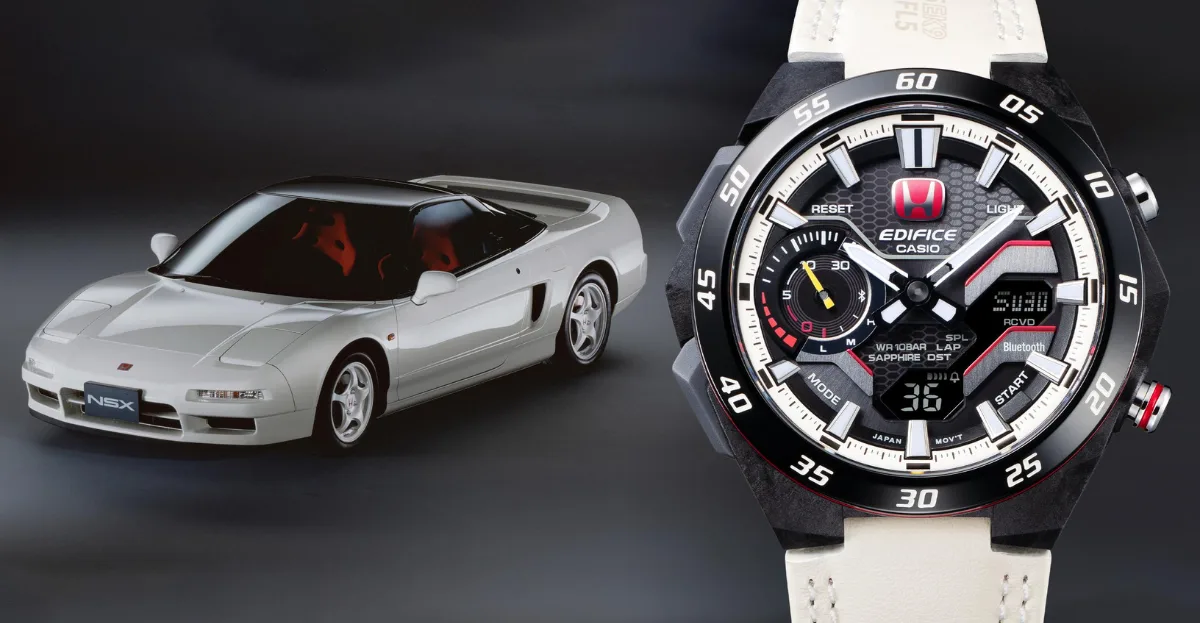 Rev up, motorsport fans! Casio rolls out the ECB-2200HTR from their EDIFICE line – a thrilling collaboration with Honda TYPE R. Known for embodying “Speed and Intelligence,” the EDIFICE line pays homage to the iconic Honda TYPE R with this model. Decked out with the signature “Championship White” Honda paint on the dial ring and the iconic “Red H” badge synonymous with TYPE R cars, this watch is a visual tribute to the racing legacy of TYPE R, echoing its victories since the 1965 Mexican Grand Prix.