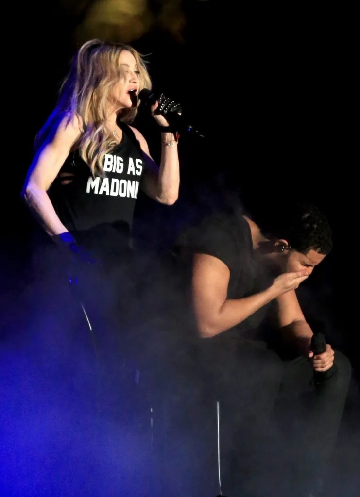 The 2015 Coachella Valley Music & Arts Festival wrapped up with a wet kiss between Drake and Madonna on 12th April (Sunday). The Queen of Pop was all pumped up with her classic song of female empowerment, “Express Yourself”, when she suddenly tossed herself onto Drake’s lap and planted a wet kiss.