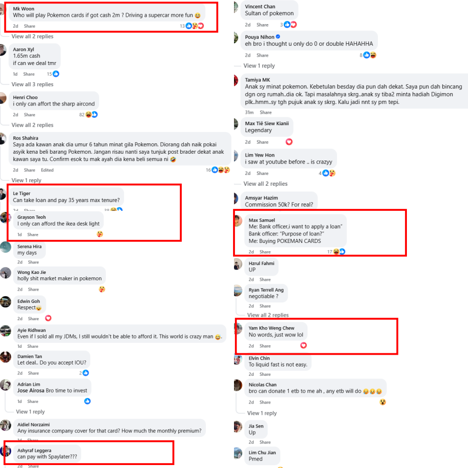 Netizens responded to the post with many of them being mostly being impressed by the user’s collection. Some made jokes saying that they could only afford to buy the desk lamp in the photo while others asked if they could make the purchase with Shopee’s Pay Later feature. A few remarked that no one would be willing to give up a luxury car for Pokémon cards.