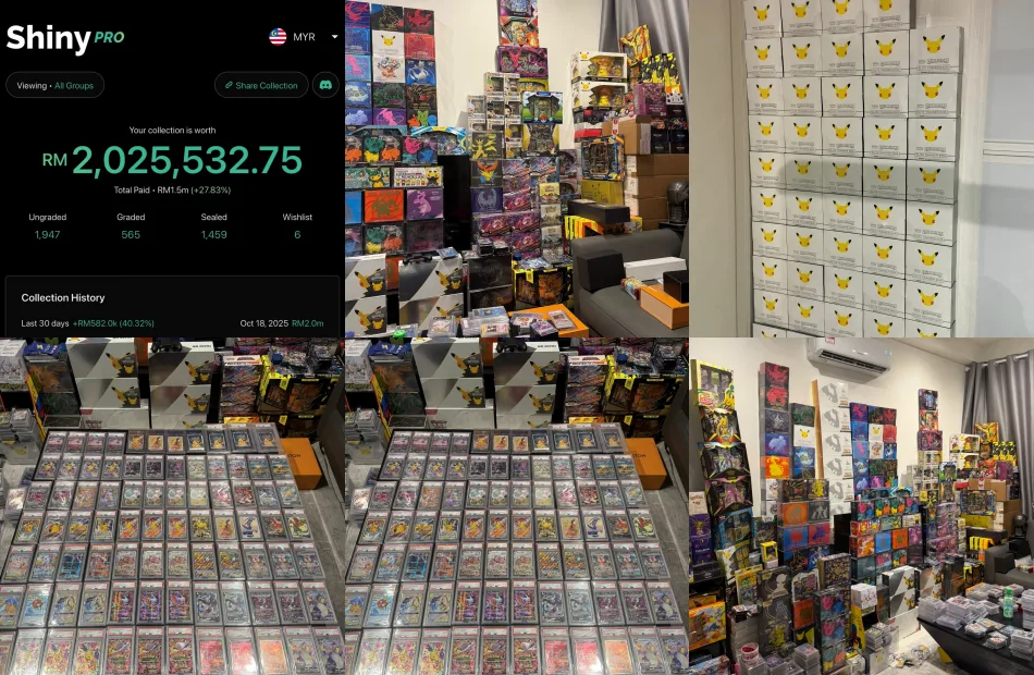 Over the long weekend, a Facebook user who goes by the name Damiral Imran posted on the Pokémon Trading Cards & Collectibles (Malaysia) page, announcing that he was selling his personal trading card collection. The post included photos of his room, which is filled with countless pieces of Pokémon merchandise. Among them, he highlighted several rare items that are highly valuable.