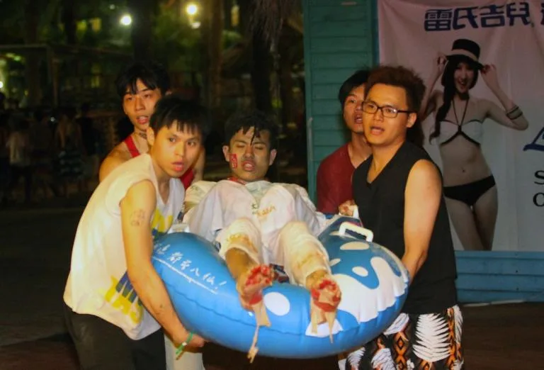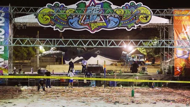 CNA wrote that some partygoers were dressed only in swimwear and bystanders were seen pouring bottles of water on the scorched skin of the injured. Witnessed also said that there were trails of bloody footprints leading away from the stage.