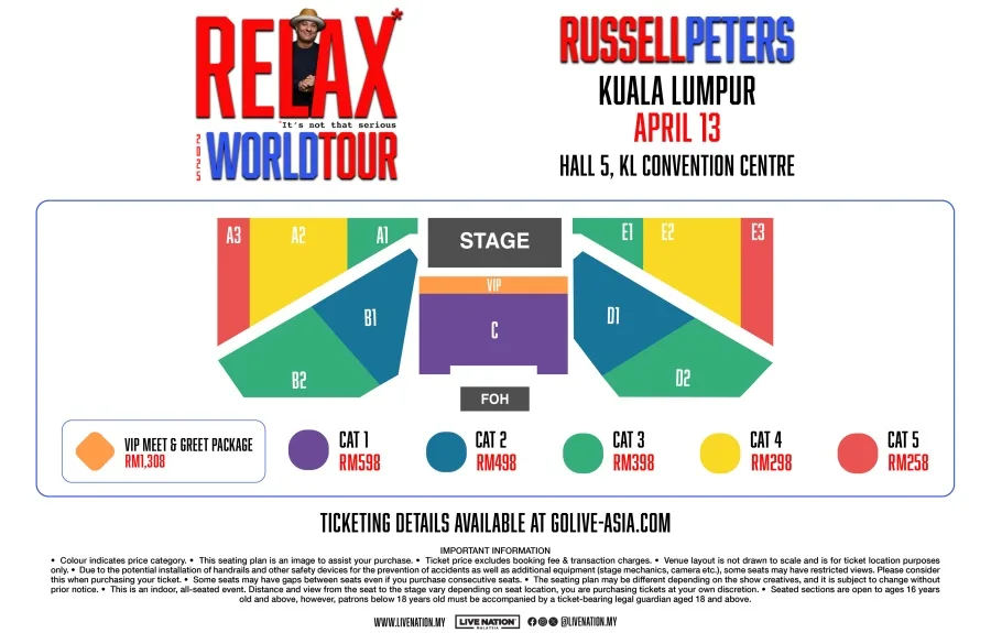 The general ticket sales will begin next Saturday (9th November) from 11am local time at golive-asia.com. For more details on the tour, please visit livenation.asia. So, mark your calendars now and get ready to have the time of your life when Russell Peters is in town next year! In the meantime, here’s a snippet from one of his recent shows to give you a preview of what you can expect for his upcoming KL performance.
