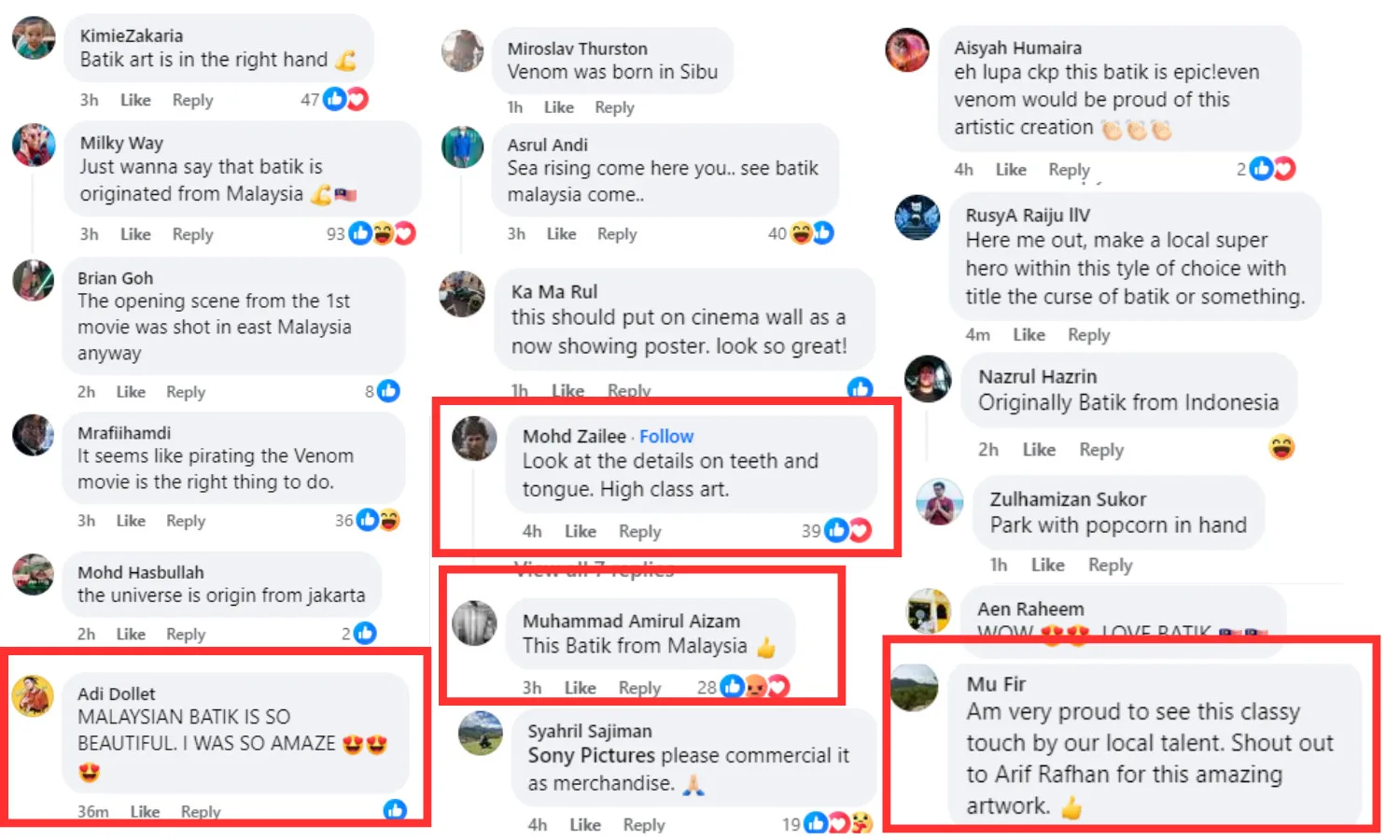 Through Sony Pictures’ official Facebook account, they shared Arif’s batik designs, which feature the iconic symbiote character with a vibrant twist, incorporating Malaysian elements such as the national flower, hibiscus. Sony Pictures described the artwork as “a true fusion of Malaysian culture and the world of Venom,” crafted to perfection. In addition to the symbiote, Arif also created an artwork showcasing Eddie Brock, who is the main character in the movie played by Tom Hardy.