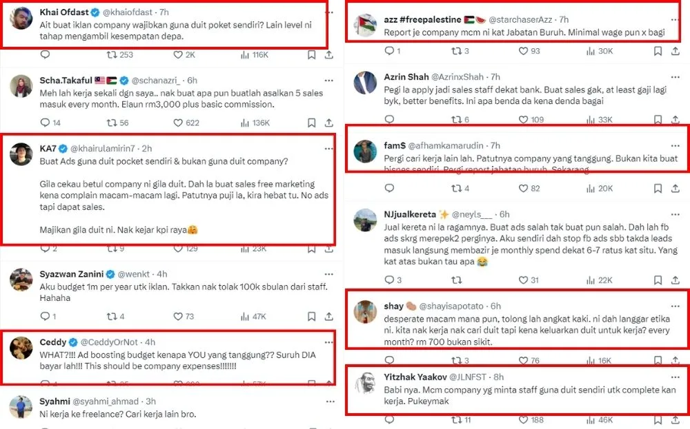 After complaining about his company, the sales associate received tons of comments from netizens. Many were surprised that the company would force the employees to pay for ads boosting with their own money. Some urge the employees to report the company to the Department of Labor or leave the company as working there does not seem to have any value, especially since he’s only getting RM1,500 per month.