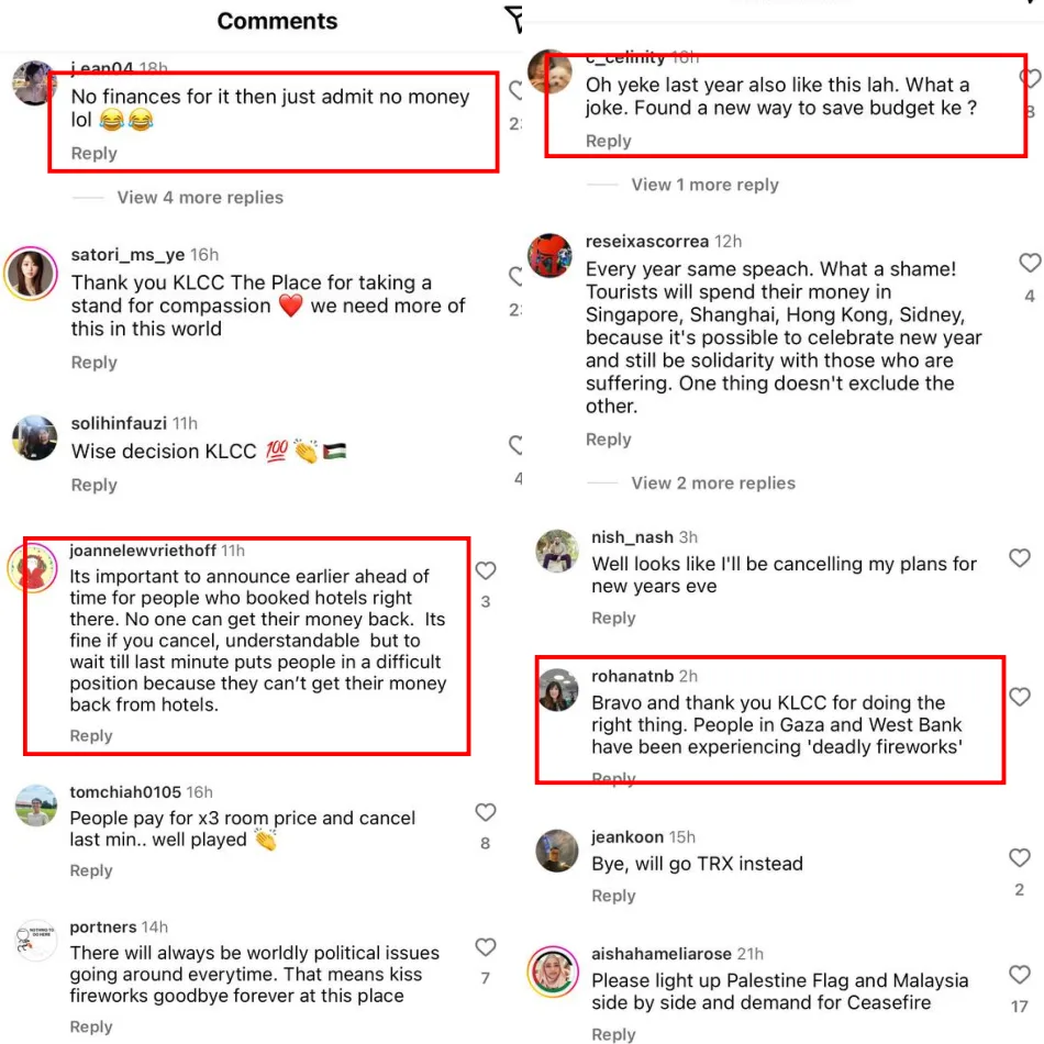 Netizens reacted to the announcement with some expressing dissatisfaction. While there were those who appreciated KLCC for being compassionate for the people going through unimaginable atrocities, others felt like this was just an excuse to save money. Some even pointed out that there was no fireworks show last time and criticised the management for the last-minute announcement as many came from afar to watch the iconic light performance.