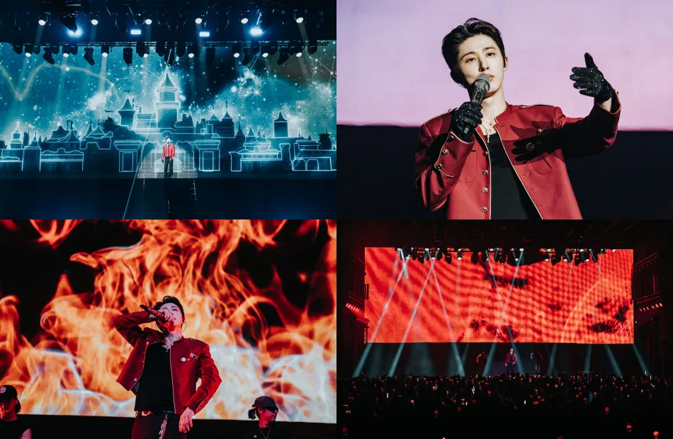 As the lights dimmed, the venue erupted with screams of anticipation. Dressed in a red, ringmaster-inspired jacket, B.I rose from a stage door in the floor to the upper level as the music struck up, launching straight into the tour’s title track, “Parade”. The opening number was followed by one of his most iconic tracks, “COSMOS”, and then “Free Fall”, as he made his way down to the lower level of the stage. His presence alone was enough to captivate the audience as he delivered the first three songs solo — just him and his microphone, a testament to his starpower.