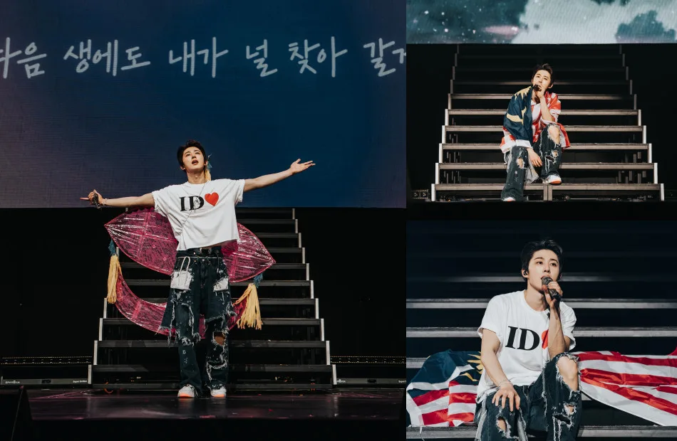 Of course, no K-pop concert would be complete without an encore. Returning to the stage in more casual attire, a T-shirt emblazoned with “ID ❤️” and even a wau, a traditional Malaysian kite, strapped to his back, B.I delighted fans with his playful look. The rapper took the opportunity to catch his breath by introducing the audience to 3 unreleased tracks, including “Mambo” and “Rainy Day”. It was during this intimate listening session that a fan handed him the Jalur Gemilang, which he proudly draped over himself.