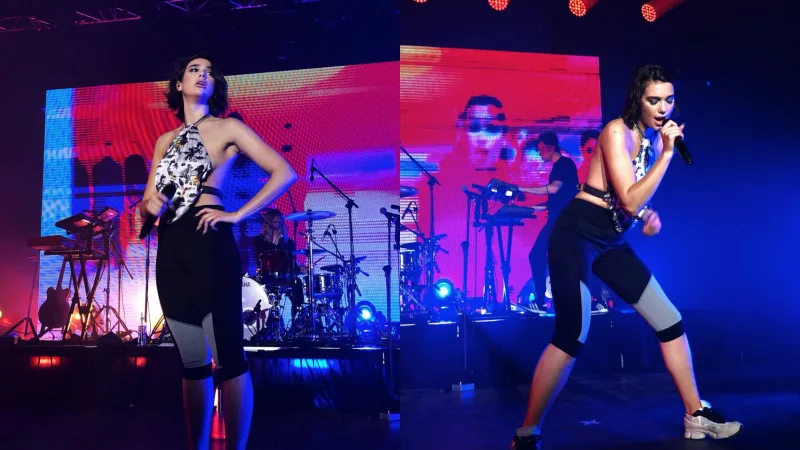 That text appeared on the large screen just before Dua Lipa launched into one of her encore songs for “IDGAF” (an abbreviation for “I don’t give a f**k”). It wasn’t long before middle fingers were raised to the sky.
