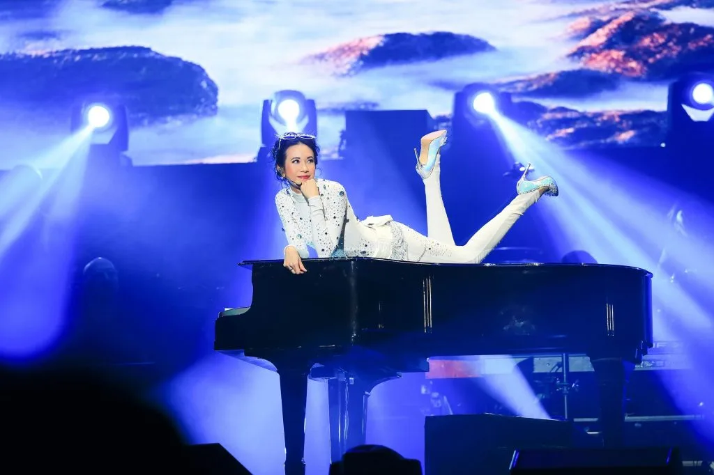 Each song transitioned beautifully on to the next, as the 49-year-old took to the piano on stage for her next song “Overcast” (“阴天”). The crowd was floored by her act as she slowly made her way on top of the piano. What’s followed was another round of cheers as she continued on with her next song “Lonely Lover” (“寂寞的恋人啊”).