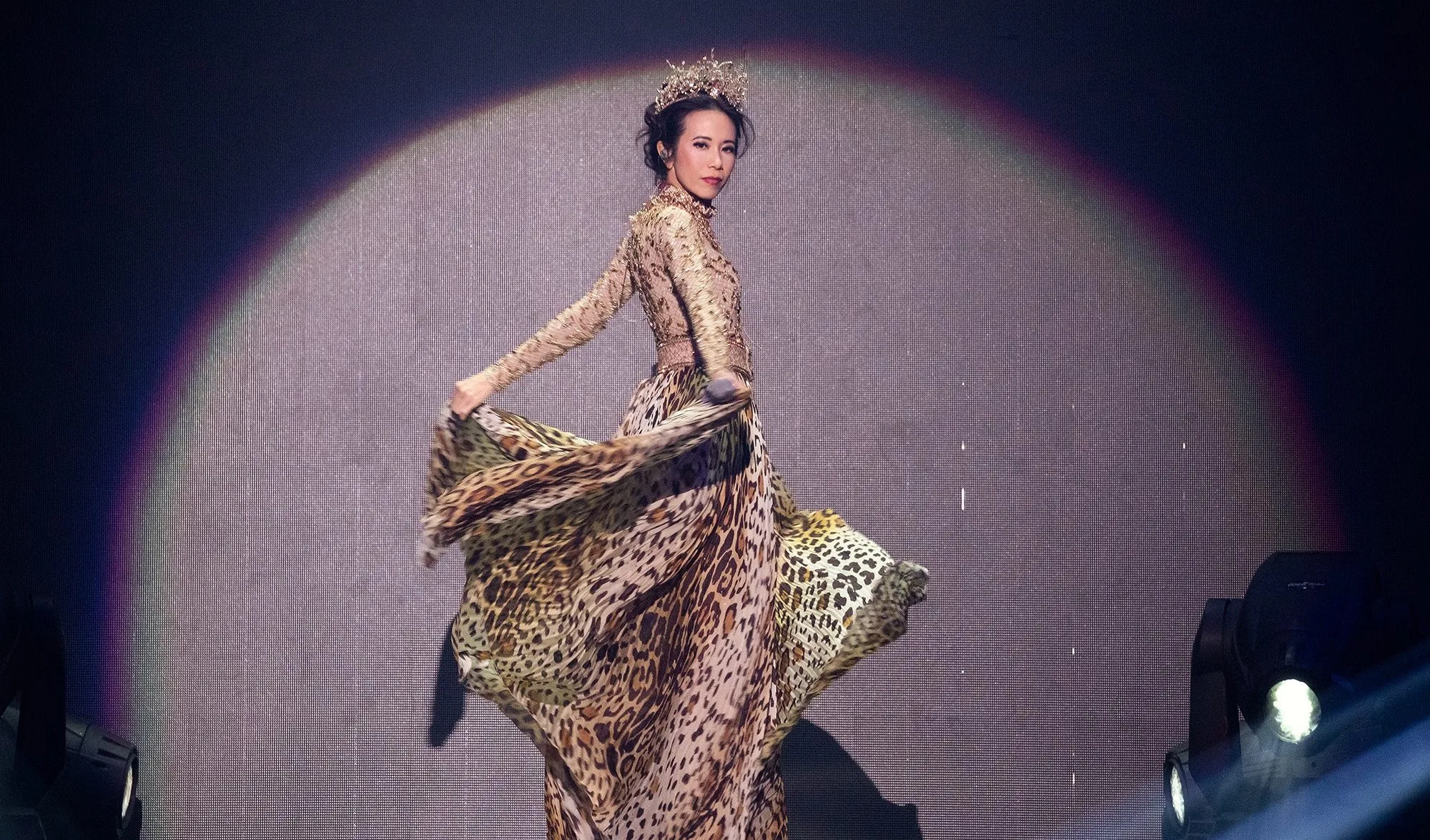 Then in a roar of cheers, the main act of the show appeared on stage after a short introduction video. The Hong Kong star was fearless in her opening act of “Let There Be Light” (“如初之光”).