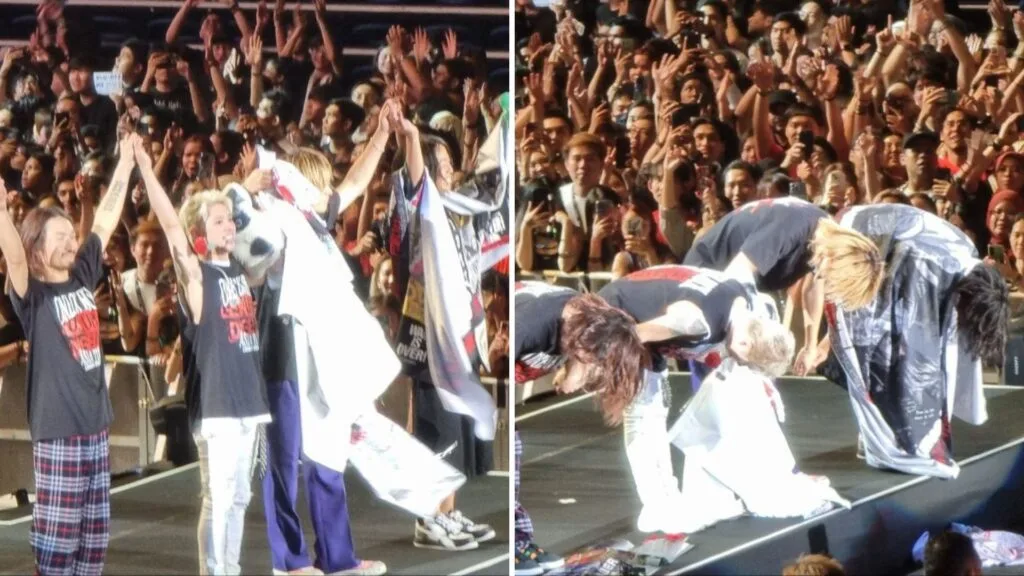 With such a stellar event, fans clamoured for more, cheering “we want more” for three minutes. Their wish was granted as lights flooded the stage once more as the band members stepped on the stage, with Taka noticeably sporting a black tank top on top of his original attire (an important detail later). The Japanese band reequipped their gear to serenade everyone with “Wherever You Are,” an encore that was as gut-wrenching as it was, for lack of better words, beautiful.