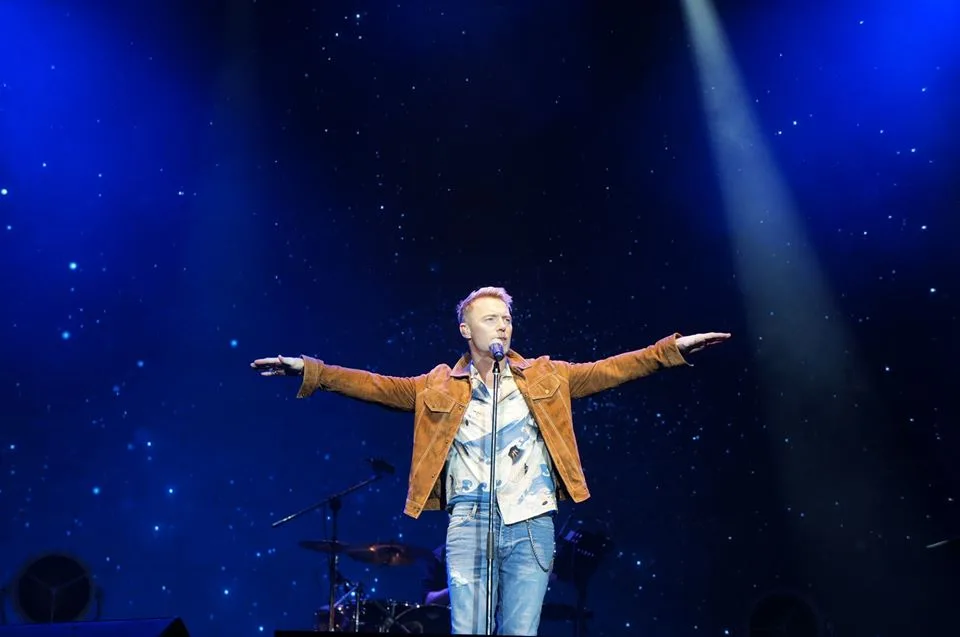 Dressed in jeans and a brown jacket over a collared shirt, the 43-year-old Irish singer jokingly asked if the guys were getting as much love as the ladies that night. “Don’t forget us, we guys have hearts too,” he said – much to the amusement of the crowd in the Arena of Stars.