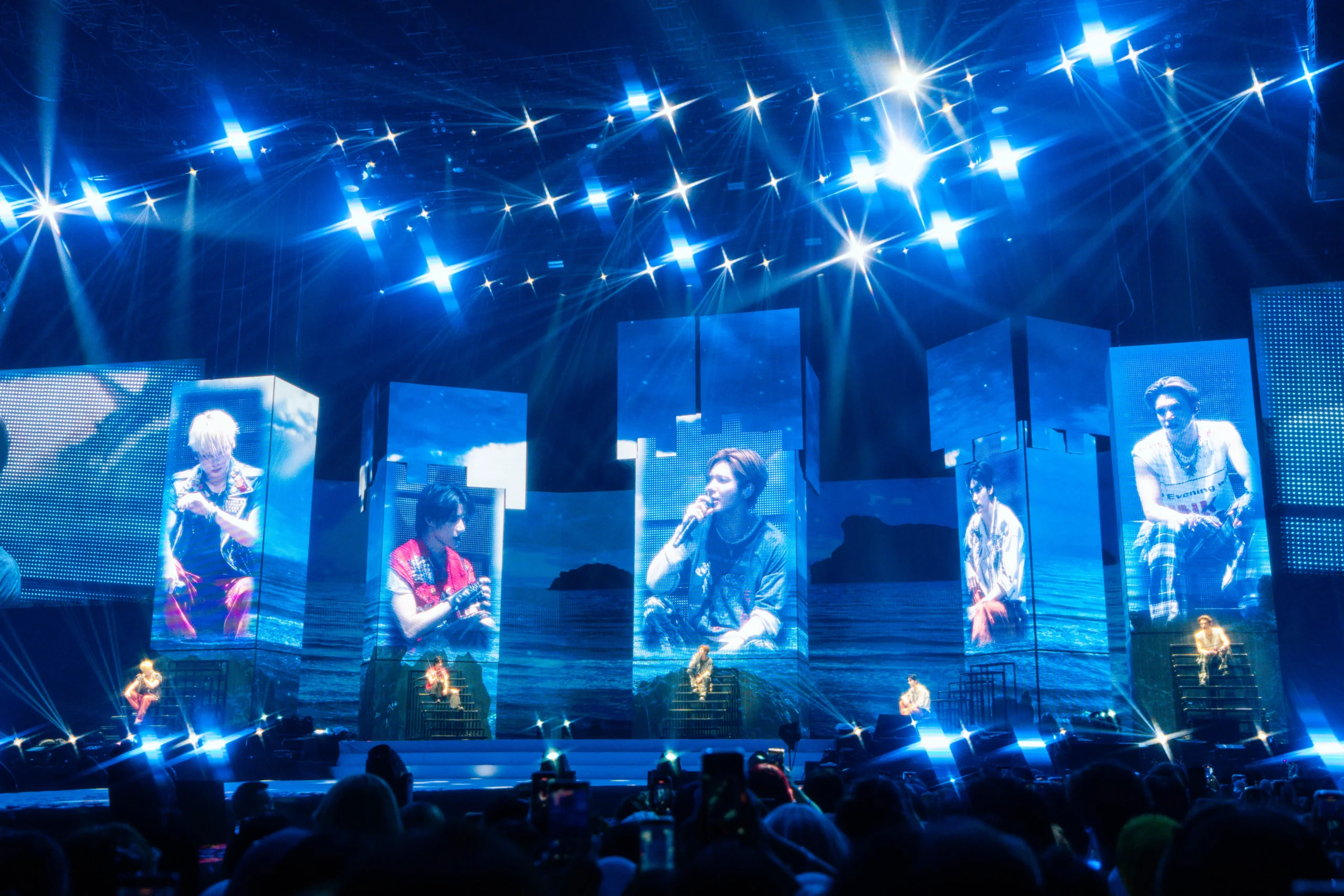 The lights went dark at 6pm. Massive screens at the main stage showed TXT dressed in outfits fit for royalty, before switching to a montage of them running in a field, then away from the crowd. The concert opened with stunning visual effects, immediately igniting the venue as the boys powered through a series of high-energy tracks.