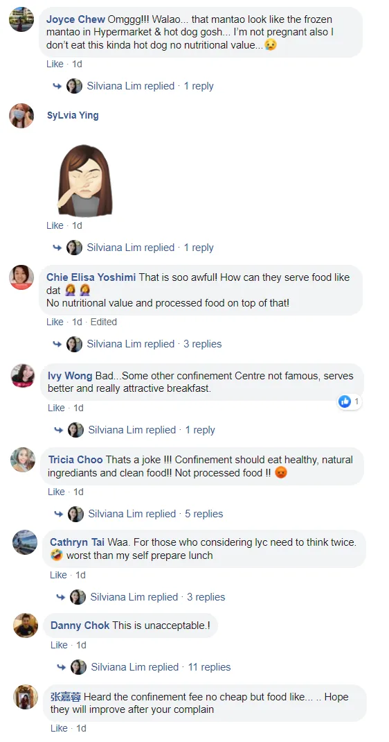 Since it’s a highly-rated confinement centre, customers would be expecting a lot in ensuring they get served nutrient-dense food, considering they paid a huge sum to the centre. Unsurprisingly, she’s not the only one who felt cheated. Her Facebook contacts also questioned the centre and shared their disappointment.