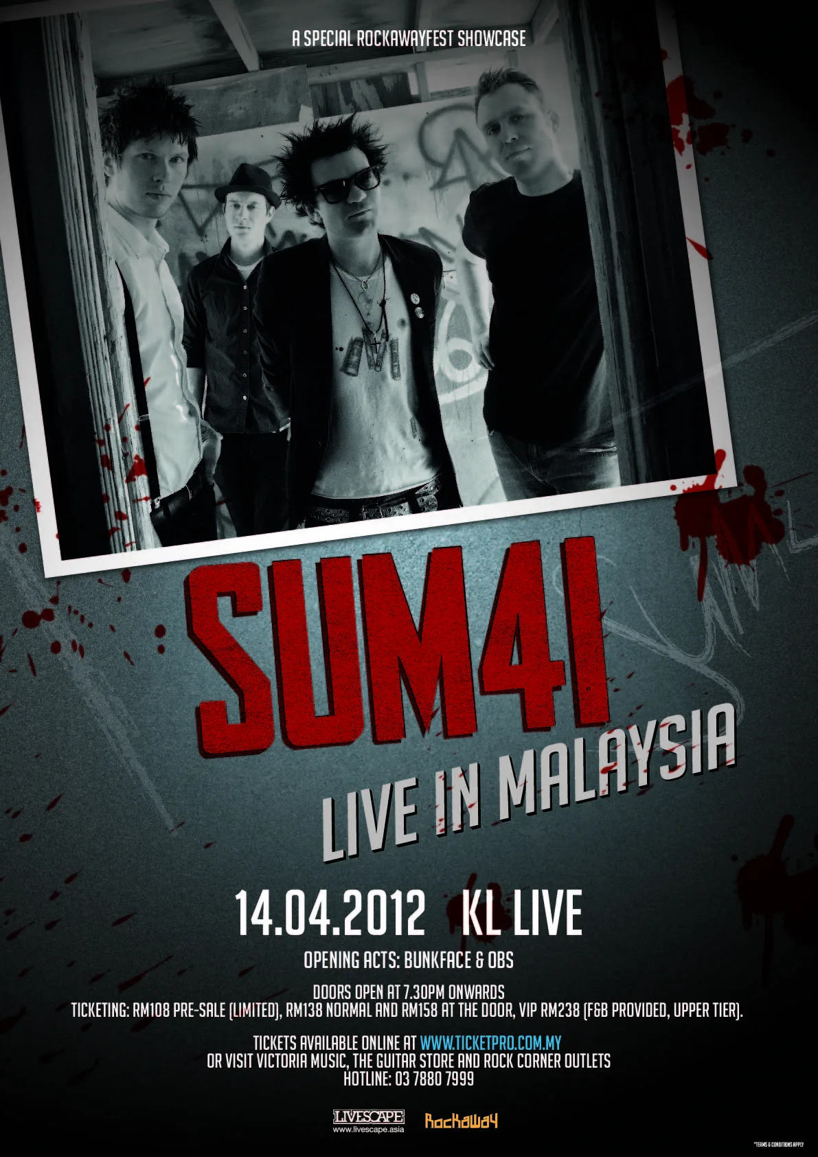 Livescape Asia just announced that they’re running a Sum 41 “Meet n Greet” competition! So, calling all Sum 41 lovers, you now stand a chance to win exclusive meet and greet privilege with the band on the 14th of April. Nothing too fancy or too difficult to score those passes. All you have to do is: