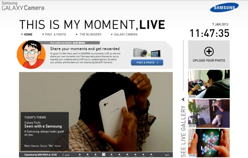 From now until 20th January 2013 (Sunday), photography enthusiasts also stand a chance to win one of five new Samsung GALAXY Cameras. To participate in the contest, all that is required is to log on to Samsung’s “This is my moment, LIVE” microsite, take one stunning photograph based on the daily theme, and share it on the microsite.