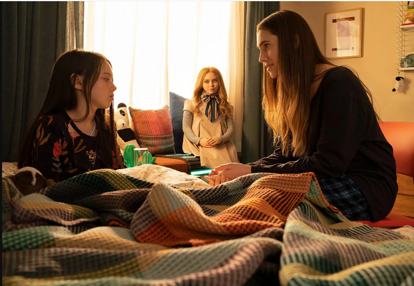 Child actress Violet McGraw (who plays Cady) spent the most screen time with M3GAN and loved every minute of it. “It was really fun because I had a scary, terrifying doll that was my best friend and it was a really cool experience hanging out with M3GAN to see how they did her,” the 11-year-old star told The Hollywood Reporter. “They made an actual robot and had a puppeteer team that would make her eyes blink and move her arms and mouth.”