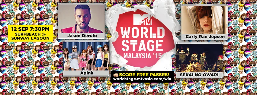 As per usual, #worldstagemy passes are not for sale and may be won by fans through game contests via the #worldstagemy microsite. But, thanks to our friends from MTV Asia, we’ve got a couple of MTV World Stage Malaysia 2015 passes to giveaway to a few lucky fans too!