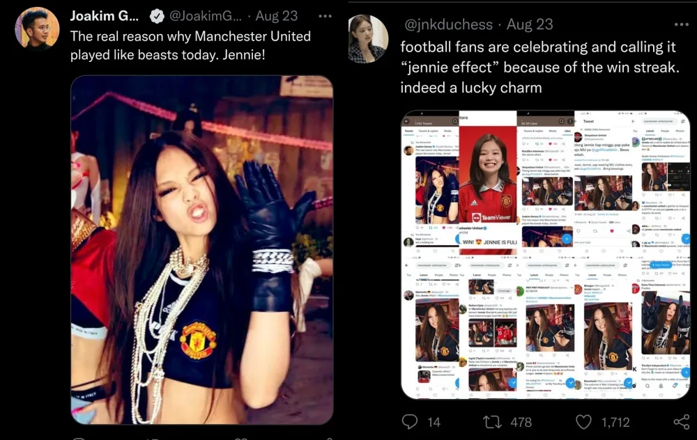 Fans’ edits of the “How You Like That” singer quickly went viral on Twitter. The football fans had joked that Jennie was Manchester United’s “good luck charm”, using the term the “Jennie effect” as the reason for their incredible win.