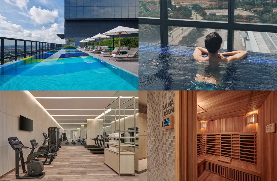 Now that we’ve covered the room and the food, let’s discuss entertainment. We thoroughly enjoyed taking a few refreshing dips in the outdoor swimming pool on the 12th floor, which also happens to be where the 24-hour fitness centre is located. That’s right, you can access the gym at any time with your keycard. The fitness centre is fully equipped with cardiovascular equipment, elliptical machines, exercise bikes, free weights, strength training equipment, treadmills, and weight machines. And don’t worry, there’s a shower and sauna room just outside the gym, perfect for freshening up after your workout.