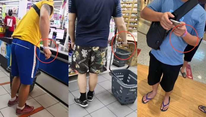 Many of these snapshots were taken at local supermarkets. Individuals with tags on their wrists are classified as person under surveillance (PUS) for Covid-19. Despite the compulsory home quarantine, a number of people have blatantly violated the requirement.