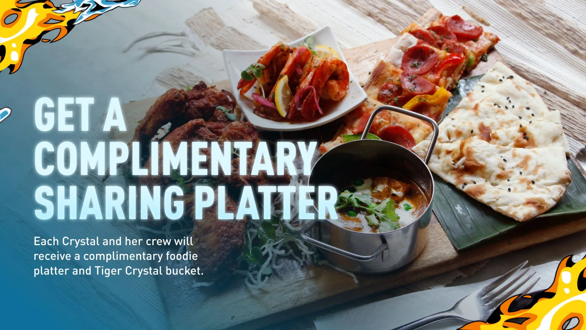 Each Crystal that attends the Tiger Crystal Supper Club will be able to enjoy a specially-curated complimentary meal and refreshingly light Tiger Crystal, along with three accompanying friends.
