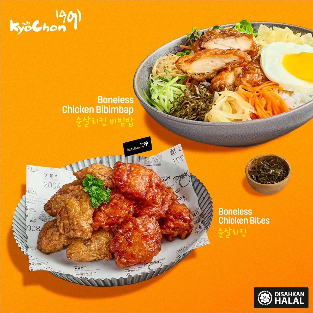 The Boneless Chicken Bibimbap is priced at RM25.95. Order yours today and experience the deliciousness of KyoChon 1991.