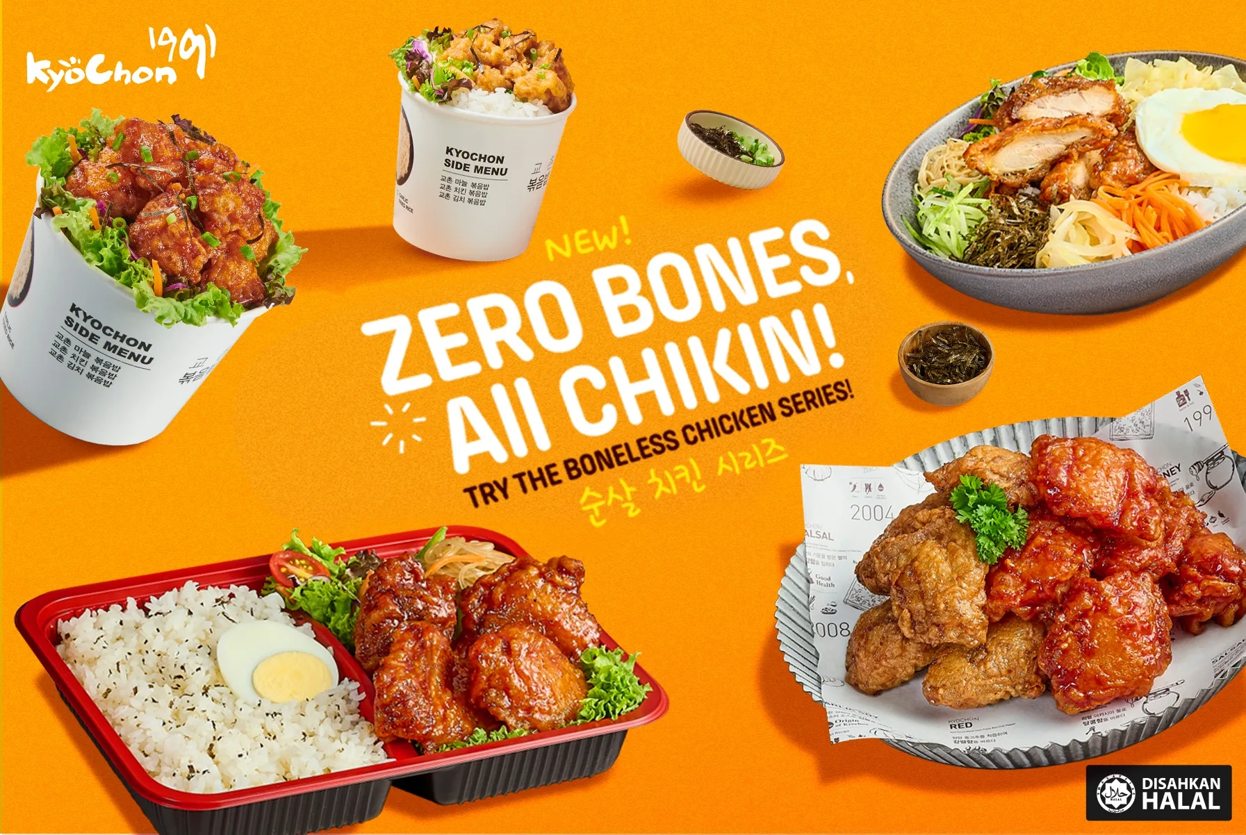 KyoChon 1991 is excited to announce the launch of its new boneless chicken menu! That’s right, zero bones, all chicken! The new series includes a variety of boneless chicken dishes made from tender and juicy chicken thighs. Whether you are looking for a quick and convenient snack or a more elaborate dish, there is something for everyone on the new boneless chicken menu — even for children!