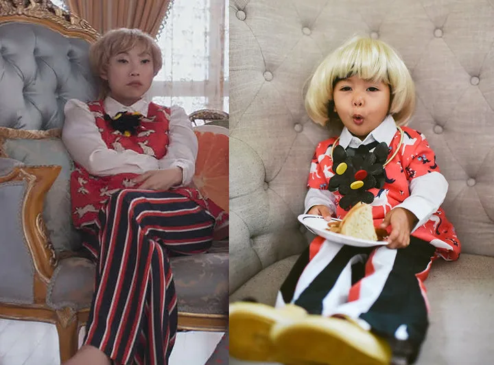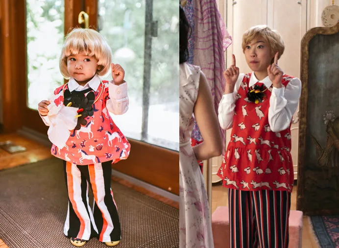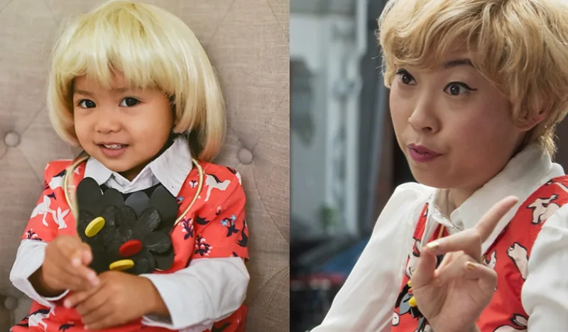 Despite her young age, Liliana is already proving to be a pro at cosplay when she rocked the blonde wig, striped pants and a patterned frock as mini Peik Lin. Her 7-year-old brother Jonah Raphael also joined in on the fun when he was dressed up at Peik Lin’s dad Wye Mun (played by Ken Jeong).