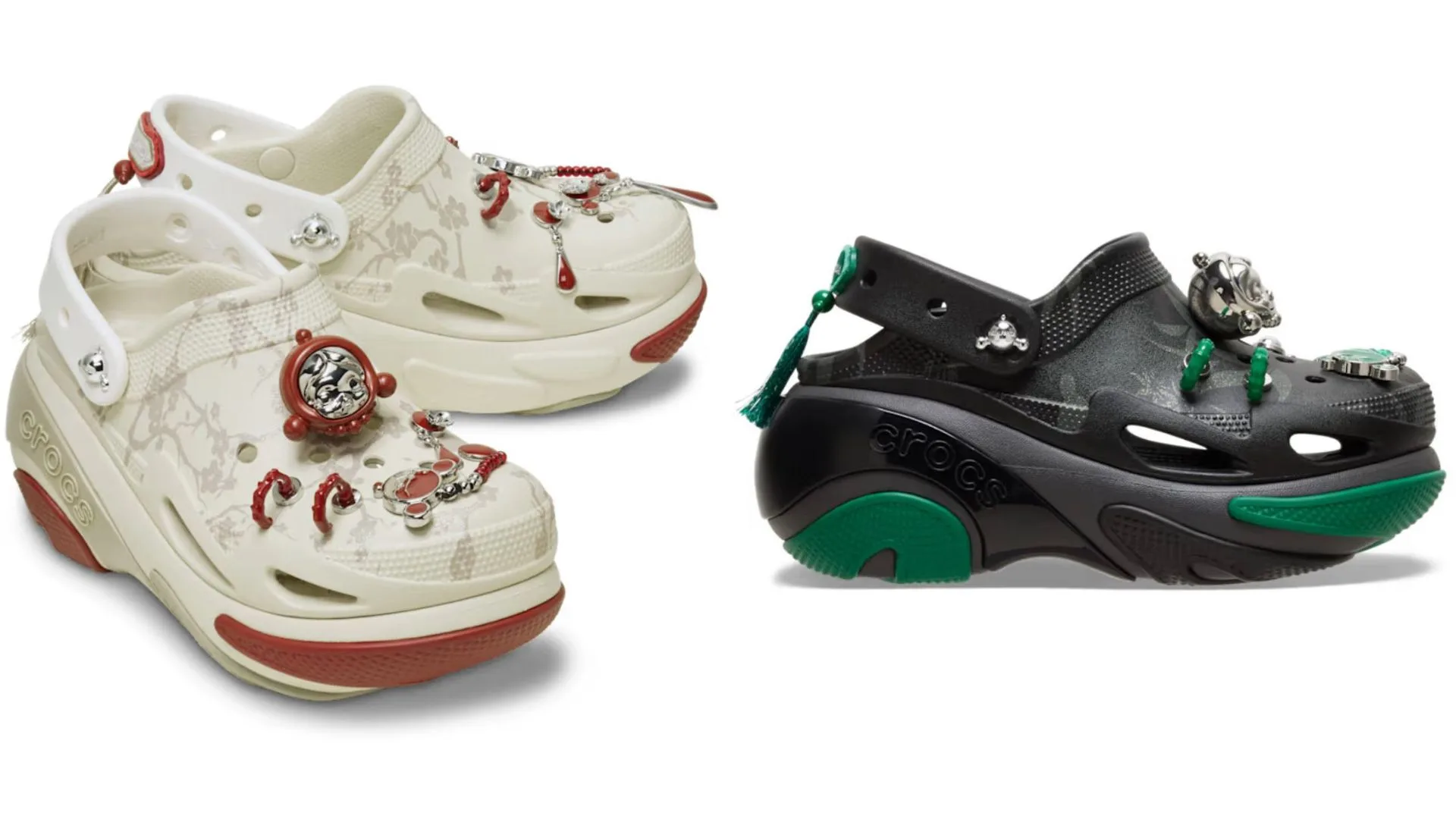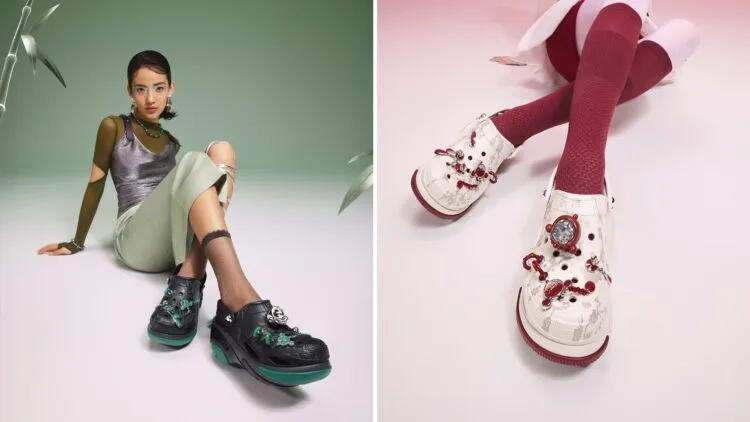 Crocs teams up with Pop Mart for the SKULLPANDA collection inspired by bamboo and plum blossoms. The designs mix Eastern elegance with futuristic style, taking wearers on an imaginative journey through a snowy plum blossom forest and a mysterious bamboo grove.