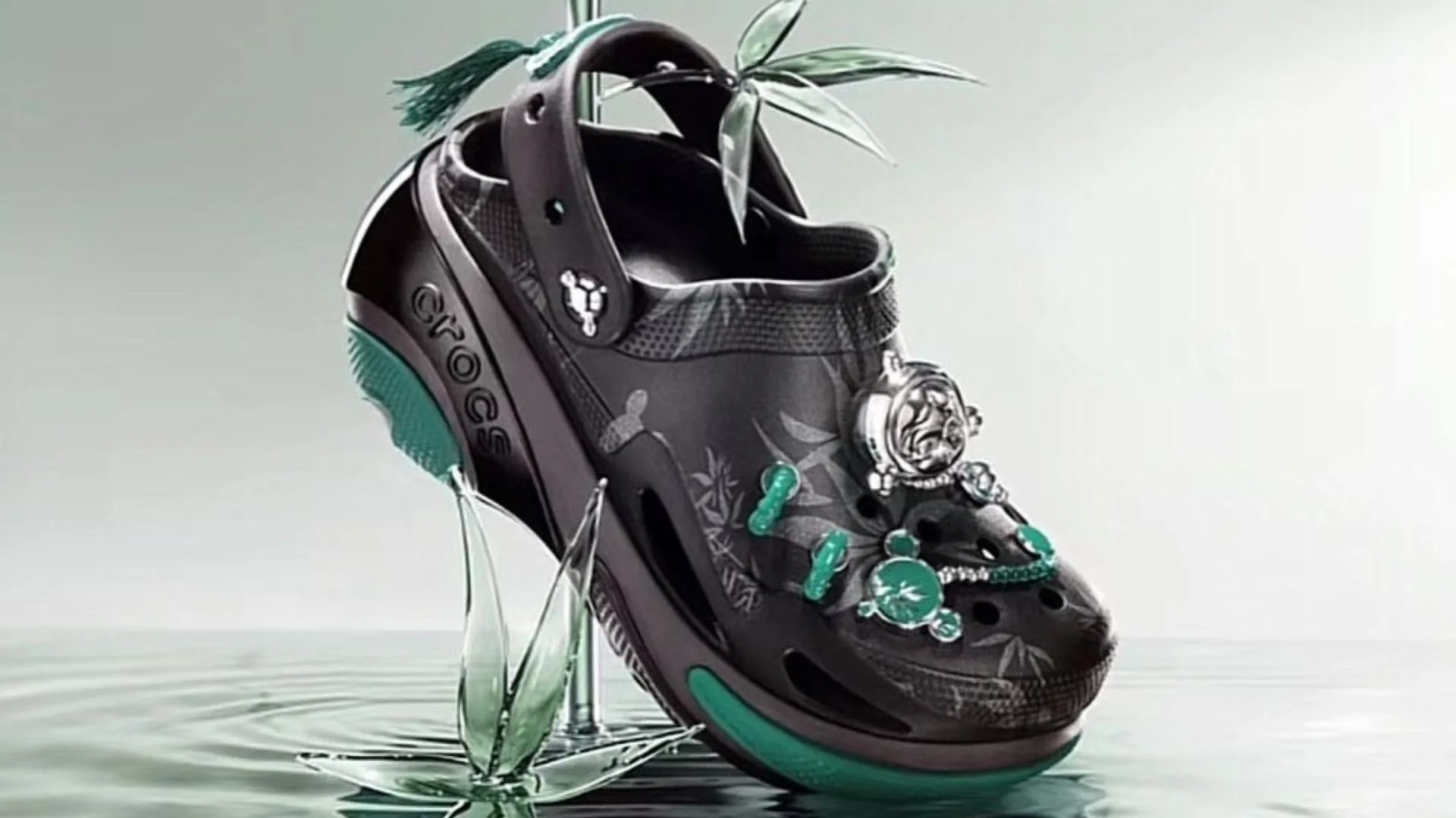 Both styles use a fine glitter technique to highlight the bamboo and plum blossom patterns, giving them a satin-like shine. Metal details add a bold, modern twist, bringing fresh energy and layered texture to the classic Crocs silhouette – where tradition meets futurism and Eastern elegance gets a street-style upgrade.
