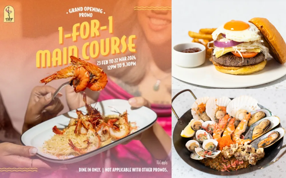 The restaurant is introducing its 1-for-1 main course offer, available daily from 12pm to 9.30pm. For every order of a main course dish, the second main course, of equal or lesser price value, will be complimentary. Choose from the mouth-watering list of Flamboyant Mains and Tipsy Signatures (excludes Wok-Fired Beef Cubes) on Tipsy Flamingo Kuala Lumpur’s food menu, such as Grilled Garlic Prawn Aglio Olio, Wagyu Beef Burger With Fries and Truffle Moonlight Beef Hor Fun.