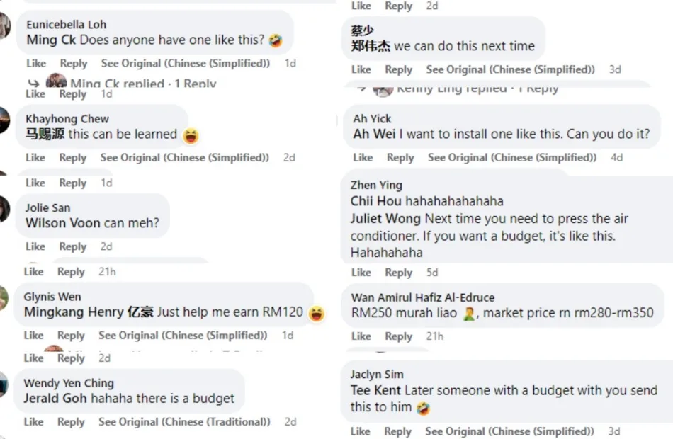 Netizens responded to the Facebook post with many finding the whole thing hilarious as they’ve never seen an air-cond installed in that position. Others believe that the technician’s price was actually quite cheap and affordable, arguing that the market price could go as high as RM350.